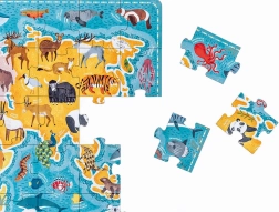 Intrați în lumea minunilor și a inspirației cu puzzle-ul Puzzlove CzuCzu Animale Harta lumii. Această frumoasă compoziție, alcătuită din 60 de piese, prezintă nu doar continentele și oceanele, ci și animale fascinante care populează diferite colțuri ale planetei noastre. Perfect pentru copiii care iubesc animalele și își doresc cunoștințe și aventuri noi.