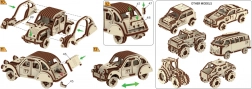 Acest model de mașină de raliu oferă o combinație captivantă de distracție creativă și decorațiune elegantă pentru interior. Piesele din placaj de mesteacăn de primă clasă se îmbină perfect – fără lipici și șuruburi – iar rezultatul este un automobil retro impresionant, cu numeroase detalii fine.