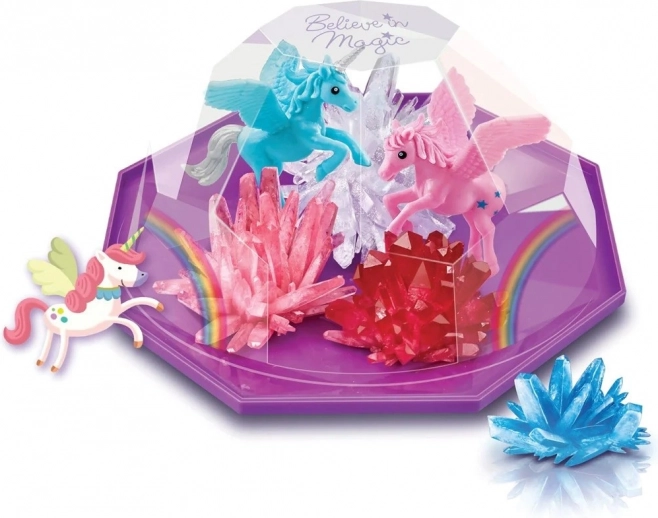 Descoperă farmecul chimiei și al naturii într-un singur set distractiv. Copiii pot urmări pas cu pas cum cresc cristalele și își pot crea propriul terariu magic cu tematică de unicorni. Cultivarea durează aproximativ 4–7 zile și dezvoltă răbdarea, curiozitatea și motricitatea fină.