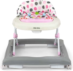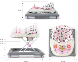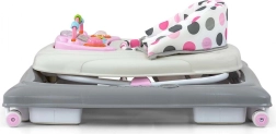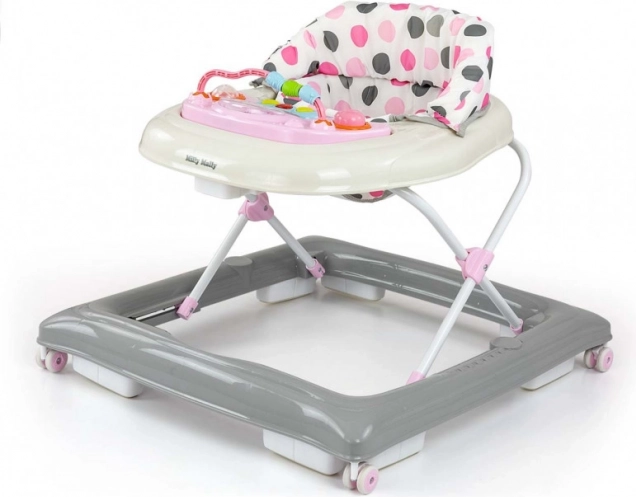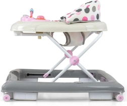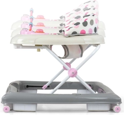 Patru rotițe pivotante de înaltă calitate, care nu zgârie suprafața pe care se deplasează, asigură libertatea de mișcare, iar cele opt opritoare din cauciuc protejează copilul împotriva alunecării pe scări sau alte obstacole.