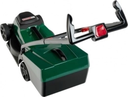 Include un coș detașabil pentru „iarba tunsă” și o imitație de starter electric pe mâner. Mânerul are o lungime de aproximativ 45 cm; mașina asamblată are circa 55 cm înălțime și 22 cm lățime – dimensiuni ideale pentru mâinile copiilor. Datorită calității bune a execuției, rezistă multor ore de joacă.