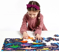 Puzzle-ul CzuCzu Grr Dinozauri, mare și colorat oferă distracție cu 14 dinozauri și creaturi preistorice diferite pe o suprafață de 60 de piese. Ideal pentru preșcolarii fascinați de lumea preistorică.