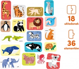 Puzzle-ul de asociere CzuCzu – animale sălbatice este primul puzzle ideal pentru cei mai mici. Copiii potrivesc două piese cu animale exotice cunoscute, precum elefantul, tigrul sau leul. În timpul jocului își antrenează în mod natural concentrarea, logica și coordonarea mână–ochi și învață să distingă culorile și formele.
