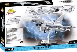 Construiește emblematicul EUROFIGHTER TYPHOON la scara 1:48 din 644 de piese COBI. Modelul oferă cabina care se deschide, suprafețe de comandă mobile, tren de aterizare detașabil și suport cu plăcuță pentru expunere spectaculoasă. Imprimerile de înaltă calitate nu se decolorează și nu se șterg, iar setul este pe deplin compatibil cu alte mărci. Ideal pentru fanii aviației, ai tematicii militare și pentru colecționarii seriei Armed Forces.