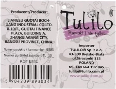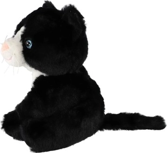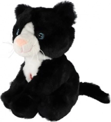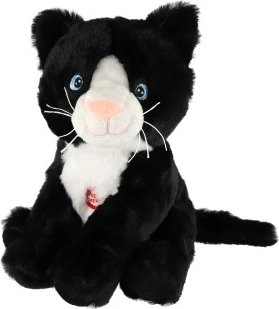 Această pisică de pluș alb-negru, extrem de pufoasă, este un companion grozav pentru copii mici și mai mari. Datorită suprafeței fine și plăcute va deveni rapid preferata pentru somn și joaca de zi cu zi. La apăsarea burticii, pisicuța mieună ca una adevărată, stimulând imaginația și percepția senzorială a copiilor.