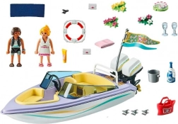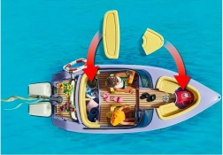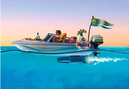 Acest set de la PLAYMOBIL vă invită la multe momente romantice și ore de distracție. După o nuntă romantică, proaspăt căsătoriții pleacă în lună de miere, iar o croazieră cu barca cu motor pe mare promite experiențe de neuitat.