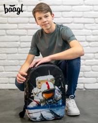 Rucsacul oferă un aspect unic cu ilustrația astronautului în spațiu, care iese în evidență în orice situație.