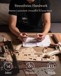 Modelul este o combinație reușită între provocare tehnică și execuție de calitate din lemn. Se evidențiază ca o decorațiune stilată pentru birou sau cameră și, în același timp, distrează în competițiile de precizie. Produsul este destinat constructorilor de la 14 ani în sus. Nu îndreptați spre oameni sau animale; materialul de ambalare nu este o jucărie.