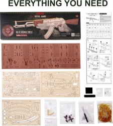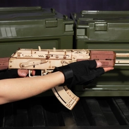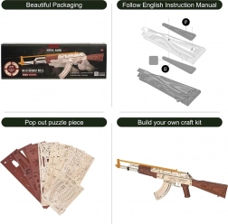 Acest puzzle mecanic 3D din lemn, la scara 0,8:1, oferă o experiență realistă de construcție și un aspect autentic. Piesele sunt tăiate cu laser cu precizie, astfel încât se îmbină perfect și nu aveți nevoie de lipici. După asamblare, vă vor încânta elementele mobile și posibilitatea de distracție în siguranță cu tragere cu benzi de cauciuc către țintele incluse.