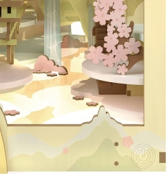 Scenă japoneză detaliată, cu control simplu al luminii, care vă va captiva. Pe raft pare un mic pasaj către lumea florilor de cireș.