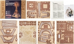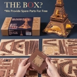Piesele decupate cu laser reproduc fidel arhitectura emblematică de tip grilaj a Turnului Eiffel și creează un aspect realist impresionant.