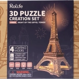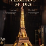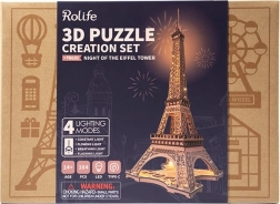Descoperiți farmecul Parisului la dumneavoastră acasă. Modelul Rolife Noaptea Turnului Eiffel redă fidel arhitectura iconică tip grilaj din 1889 și, datorită LED-urilor integrate, după asamblare se transformă într-un lumini decorativ de noapte cu o atmosferă discretă și romantică. Piesele din lemn tăiate cu precizie la laser se îmbină perfect și asigură o experiență de asamblare relaxantă.