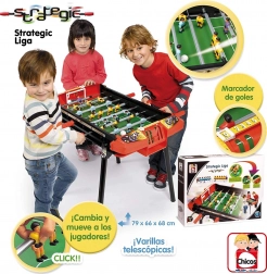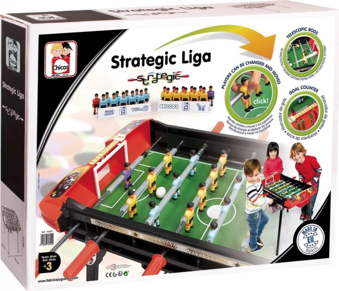 Bucurați-vă de distracție cu fotbalul de masă pentru copii Chicos Strategic Liga, ideal pentru micii pasionați de fotbal. Datorită jucătorilor interschimbabili, vă puteți crea propria strategie.