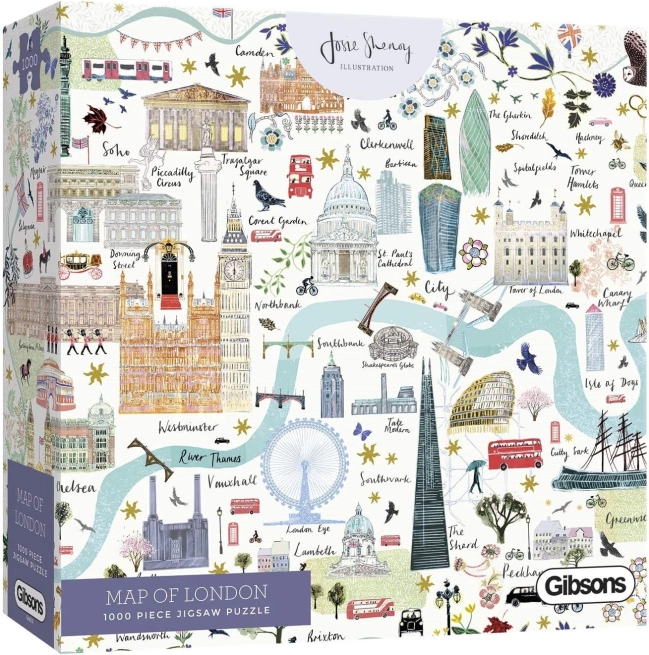 Adânciți-vă în lumea Londrei prin Puzzle Gibsons harta Londra, un puzzle unic compus din 1000 de piese realizate cu precizie. Acest puzzle vă va conduce pe străzile și în jurul monumentelor capitalei Regatului Unit, de la Big Ben până la Battersea.