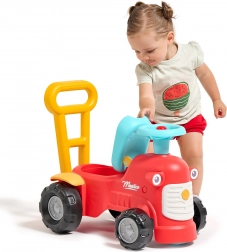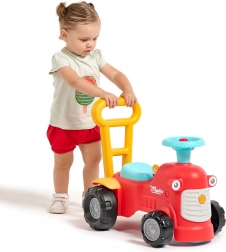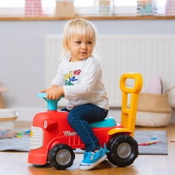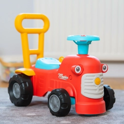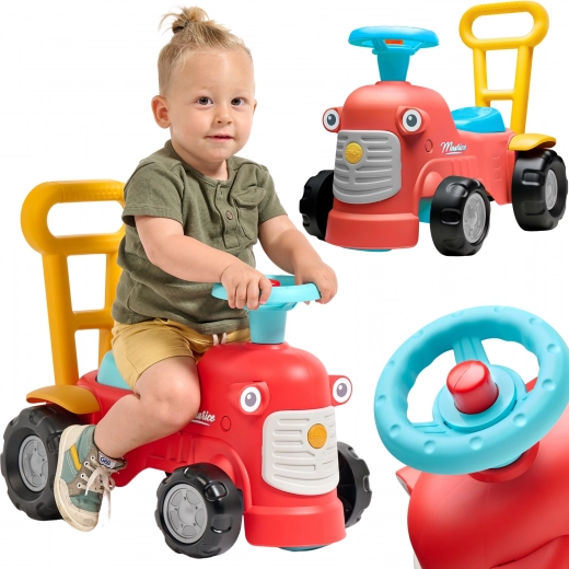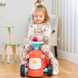 Maurice oferă copiilor o oportunitate minunată de a învăța noi abilități într-un mod jucăuș. Tractorul este echipat cu un buton de sunet și cu un claxon pe volan, care încurajează abilitățile motorii și ascultarea copilului. Călătoria cu tractorul, jocul cu volanul și conducerea cu roți care se rotesc ajută copiii să-și exerseze coordonarea și echilibrul.