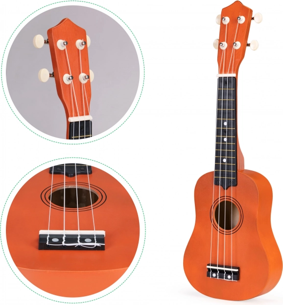 Ukulele ECOTOYS este o alegere excelentă pentru micii muzicieni. Datorită dimensiunilor compacte și construcției ușoare, se ține ușor în mână, în timp ce corzile din nailon sunt plăcute pentru degete. Instrumentul poate fi acordat fără efort, astfel încât copiii pot cânta melodii simple sau mai complexe.
