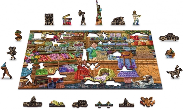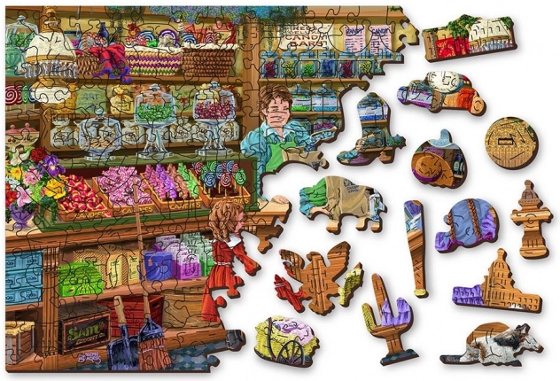 Bucură-te de o provocare cu puzzle-ul din lemn față-verso WOODEN CITY Aventură dulce 2 în 1. Datorită materialului HDF solid cu grosime de 3–4 mm și decupajului precis cu laser, fiecare piesă are o formă perfectă și margini frumos netezite. Sunt incluse și piese whimsy – piese special conturate în forme de animale, clădiri și obiecte, care adaugă șarm asamblării și pot sta singure ca mici figurine.