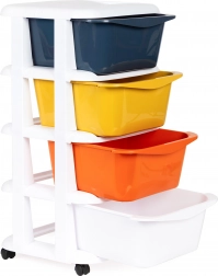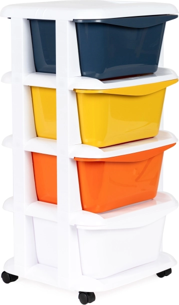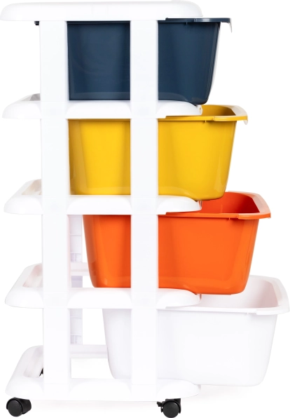 Organizatorul mobil ModernHome oferă o soluție practică și versatilă pentru depozitarea diverselor obiecte. Este ideal pentru păstrarea jucăriilor în camera copiilor sau pentru cosmetice în baie. Este fabricat dintr-un plastic rezistent, care asigură o durată lungă de viață, iar cadrul său alb adaugă un aspect modern.
