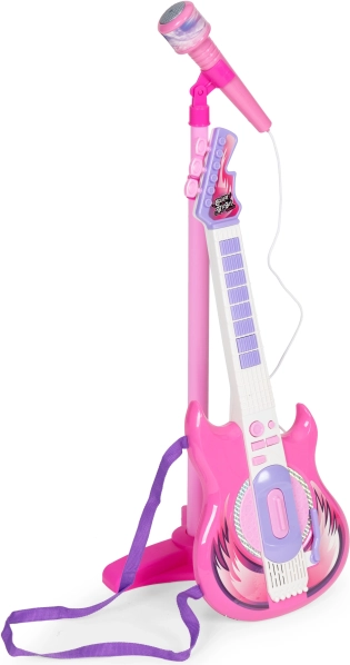 Chitara electrică și microfonul cu suport ajută la stimularea interesului pentru muzică, a creativității și îmbunătățirea coordonării copiilor.