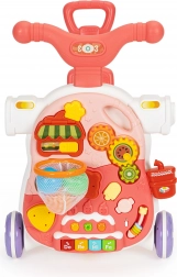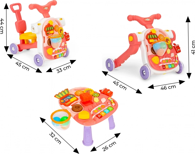 - Opțiuni 4 în 1: pusher, ride-on, trotinetă, masă educațională