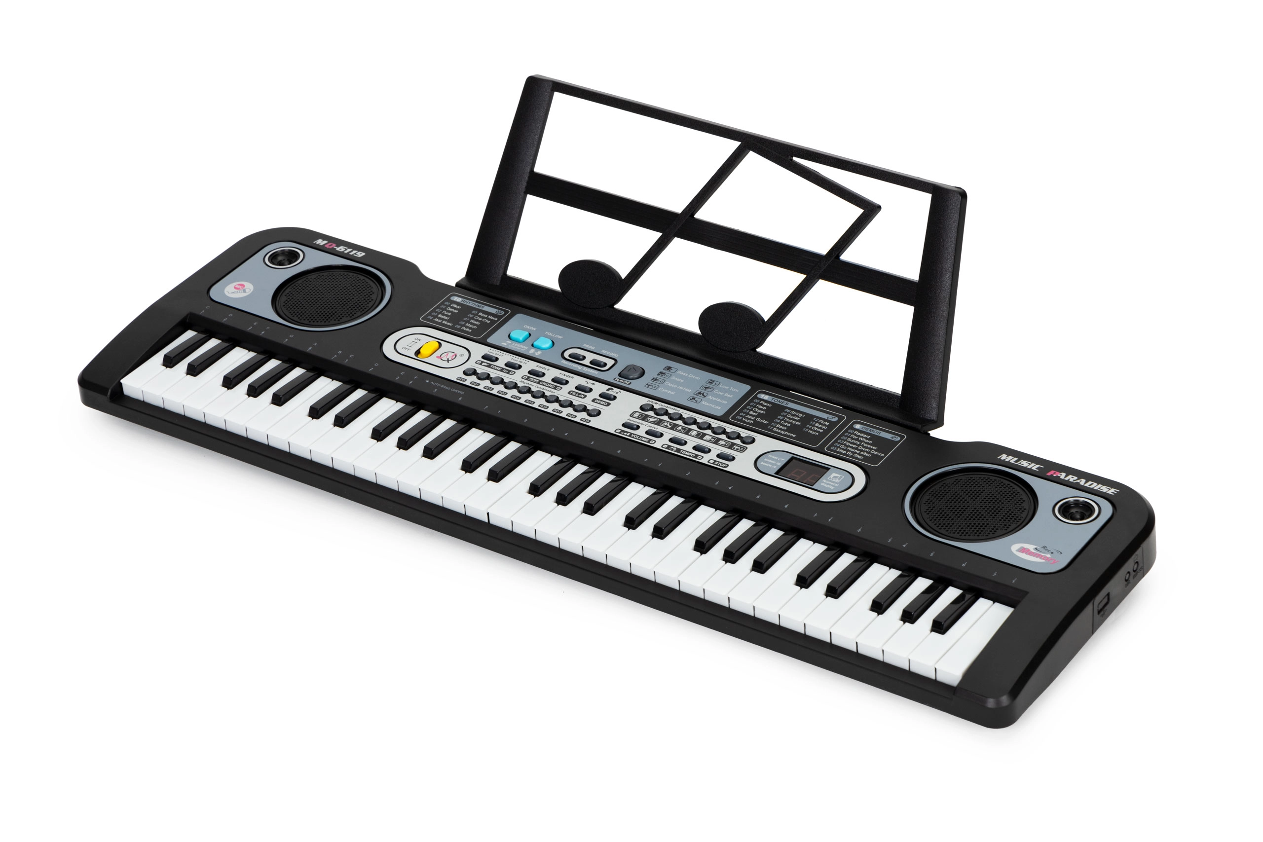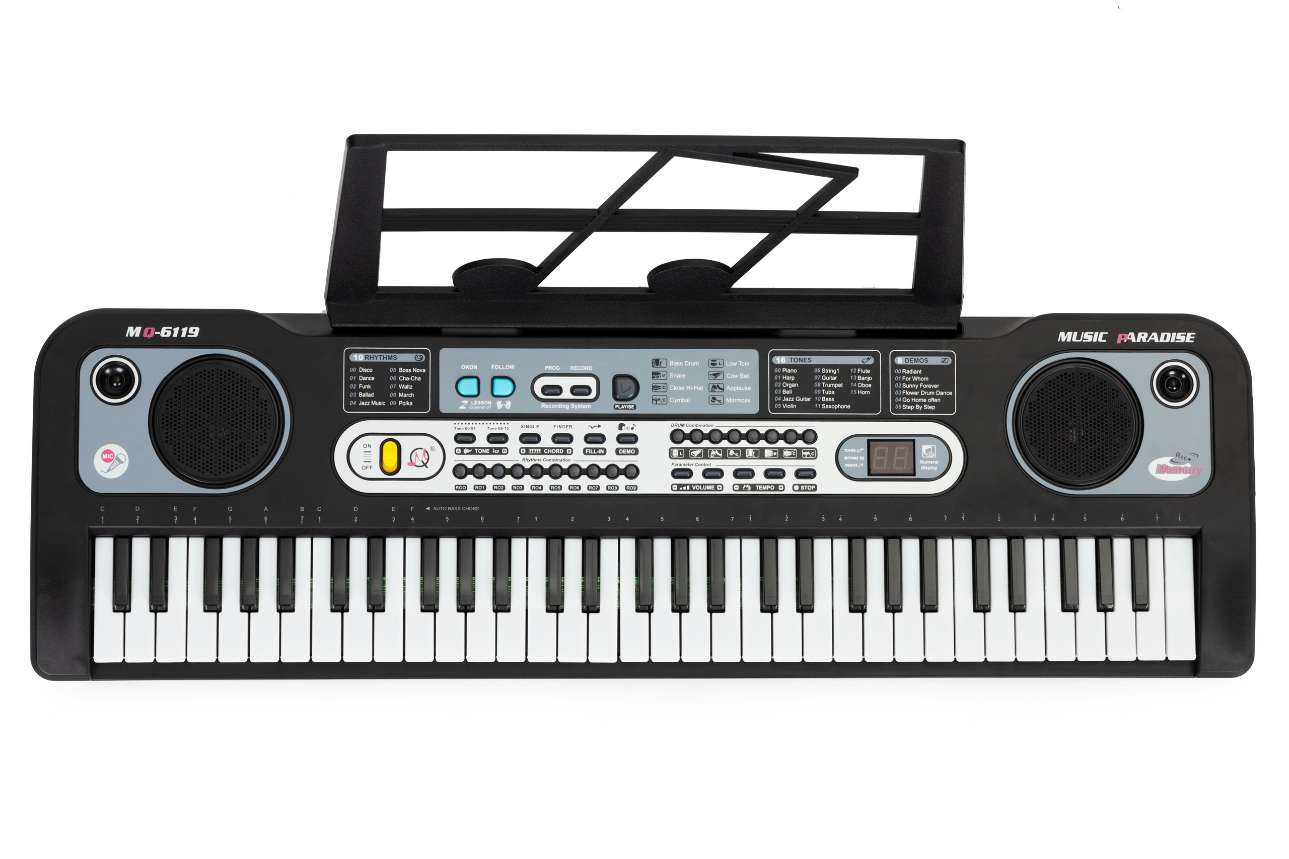 Până la 10 ritmuri, 6–16 tonuri, 6 melodii și efecte sonore extind posibilitățile de improvizație și distracție.