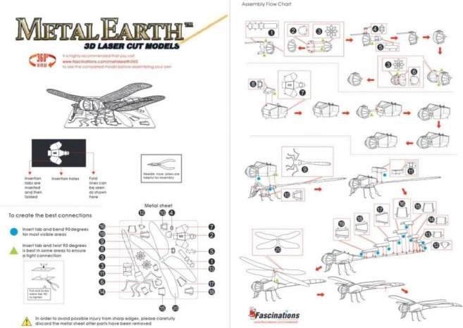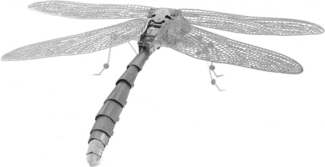 Puzzle-ul metalic 3D METAL EARTH Libelulă oferă o experiență minunată pentru toate categoriile de vârstă. Modelul este realizat din foi pătrate de oțel (11 x 11 cm) și reprezintă o piesă artistică foarte bine lucrată datorită gravurii laser detaliate. Deși asamblarea necesită o anumită îndemânare și răbdare, rezultatul final va deveni cu siguranță o decorație captivantă.