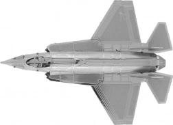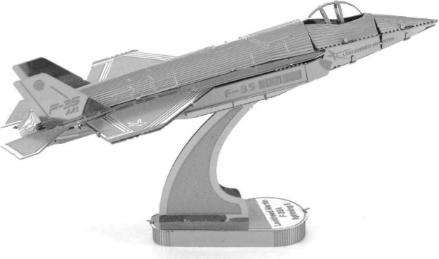 Modelul avionului de vânătoare F-35 Lightning II este elaborat detaliat prin gravură precisă, asigurând un aspect autentic.