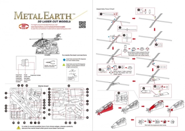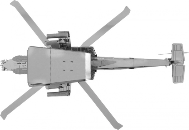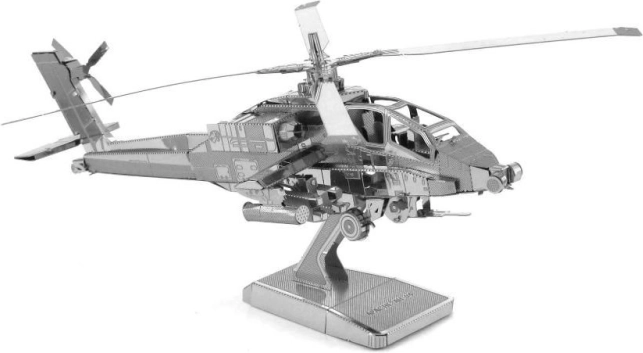 Creați propriul model 3D de elicopter AH-64 Apache, care va deveni o excelentă decorațiune pentru casă, birou sau sală de clasă. Metal Earth Puzzle 3D este cunoscut pentru precizia și detaliile sale datorate gravării cu laser. Din foile de oțel de 11 x 11 cm asamblați o miniatură fascinantă a faimosului elicopter de luptă american, folosit de la sfârșitul Războiului Rece până în prezent.