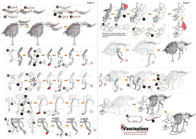 Scoateți piesele din foile metalice; dacă este necesar, folosiți clești de tăiere mici (neincluși). Piesele se îmbină între ele cu ajutorul încuietorilor formate dintr-un cârlig (bănuș) și o deschidere. Îndoiți cârligul cu ajutorul unor clești subțiri mici (neincluși) și uniți treptat toate încuietorile până când ia naștere o piesă de maestru foarte realistă!