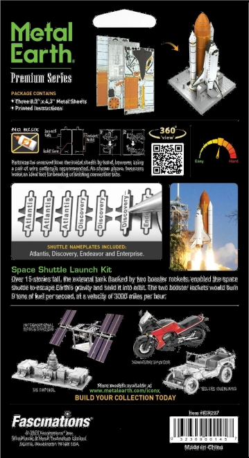 Set pentru realizarea unui model 3D metalic fascinant. Asamblarea puzzle-ului METAL EARTH necesită răbdare și îndemânare. Rezultatul muncii însă răsplătește pe deplin efortul depus. Reproducerile miniaturale sunt decorațiuni impresionante și captivante. Din foi pătrate de oțel vor prinde contur în mâinile tale modele detaliate și fascinante. Aspectul autentic al puzzle-urilor 3D METAL EARTH este obținut datorită gravării laser detaliate. Uneltele nu sunt incluse în pachet. PROCEDURĂ DE LUCRU: Scoateți piesele individuale din foile metalice; dacă este necesar, folosiți un clește de tăiere mic (neinclus). Piesele se îmbină între ele cu ajutorul unor încuietori formate dintr-un cârlig (cioc) și o fantă. Îndoiți cârligul folosind un clește mic și subțire (neinclus) și îmbinați pe rând toate încuietorile până când obțineți o piesă de artă foarte realistă!