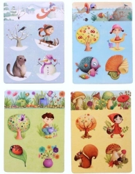 Copiii aleg dintre 16 cerculețe și caută imaginea potrivită pentru primăvară, vară, toamnă și iarnă. Jocul este rapid, iar regulile sunt simple – cine își umple primul planșa câștigă. Susține diferențierea culorilor și formelor, vocabularul și răbdarea.