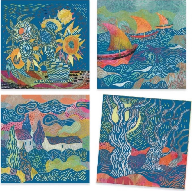 Set de design cu imagini răzuibile populare inspirate de celebrul artist Vincent Van Gogh.