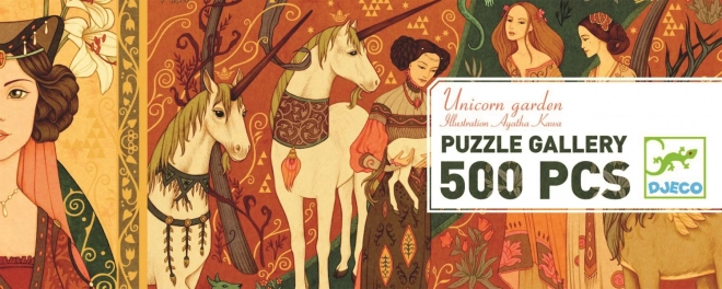 Intrați în lumea magică a unicorniilor cu puzzle-ul panoramic Grădina unicorniilor de la DJECO. Acest puzzle uimitor cu 500 de piese vă va fermeca prin detaliile sale și culorile superbe, care vor prinde viață în fiecare colțișor al imaginației voastre.