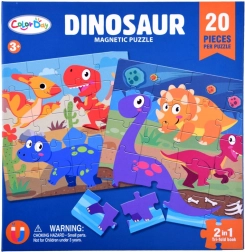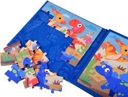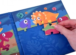 Carte magnetică distractivă cu puzzle-uri pe tema dinozauri, oferă două scene colorate a câte 20 de piese. Datorită paginilor magnetice, piesele stau bine fixate, astfel încât asamblarea este confortabilă atât acasă, cât și în călătorii. Dezvoltă motrica fină, gândirea logică și coordonarea mână–ochi.