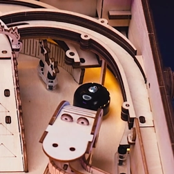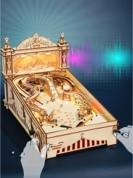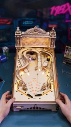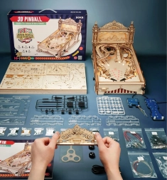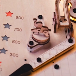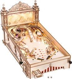 Întreprindeți o aventură cu puzzle-ul de lemn al mașinii de pinball. Acest model vă va transporta în atmosfera anilor '90 cu un design de circ retro. Oferă ore întregi de distracție tuturor creatorilor creativi de peste 14 ani.