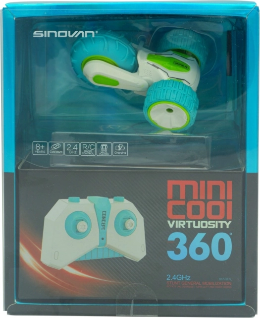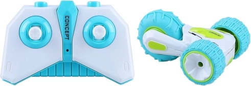 Mașină mini de cascadorie cu telecomandă pe frecvență radio. Bucură-te de multă distracție cu mașinuțe uimitoare cu telecomandă, care te vor impresiona prin trucurile grozave și viteză. Pachetul conține mașinuța cu baterie acumulator, cablu USB pentru încărcare ușoară, telecomandă pe baterii cu rază de acțiune de 12 m. Timpul de încărcare este de aprox. 15 min, timpul de joc 10 min. Potrivită pentru suprafețe netede și curate. Funcții: mers înainte, mers înapoi, virare, rotire pe loc, răsucire la 360 de grade. Baterii: Mașină 1× baterie Li-ion 3,7V (inclusă în pachet, încărcare prin cablu USB, de asemenea inclus) și telecomandă 2× AAA 1,5V (neincluse). Vârsta recomandată 8+.