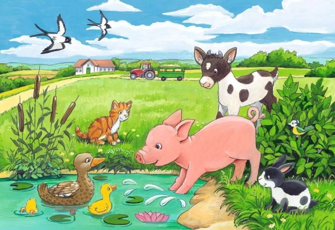 Set dublu de puzzle pentru copii Ravensburger Pui de animale conține 2 puzzle-uri a câte 12 piese, ideal pentru primele încercări în lumea puzzle-urilor. Realizare de calitate, piese rezistente și dimensiune 26 × 18 cm după asamblare, pe placul copiilor de la 3 ani.
