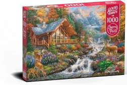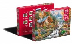 Acest puzzle oferă o evadare calmă în lumea frumuseții alpine. Prezintă o scenă cu un chalet montan lângă râu, copaci de toamnă și raze de soare care te cuceresc prin atmosfera lor nostalgică.