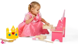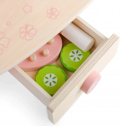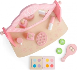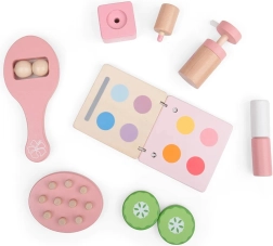 Pachetul include un set bogat de accesorii din lemn pentru joc realist: paletă compactă, „felii de castravete”, roler de masaj, perie de păr, ruj, parfum și lac de unghii. Copiii își dezvoltă prin joc abilitățile sociale, imaginația și coordonarea mână–ochi.