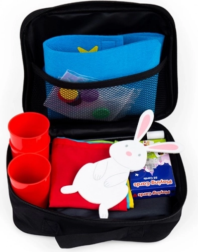 Setul include accesorii clasice pentru trucuri îndrăgite – pahare și biluțe, trucuri cu cărți și „apariția” iepurașului din geantă. Datorită genții practice, micii magicieni au totul bine organizat și pot performa acasă, la bunici sau la petrecerile pentru copii.