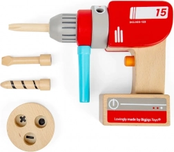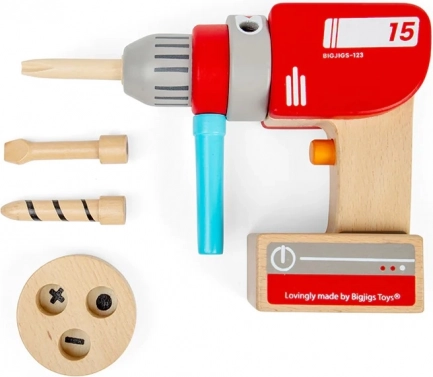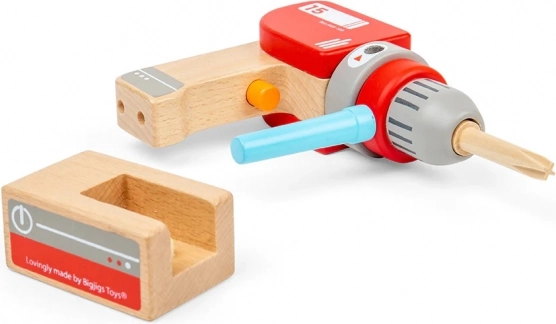 Această bormașină din lemn imită fidel o unealtă reală, dar fără electricitate și fără piese ascuțite. Copiii pot roti manual capul bormașinii, pot comuta moduri imaginare cu ajutorul butonului cu clic și pot atașa cu ușurință burghiile și șuruburile magnetice. Ideală pentru jocuri de construcție a pieselor sau mobilierului și pentru dezvoltarea abilităților practice.