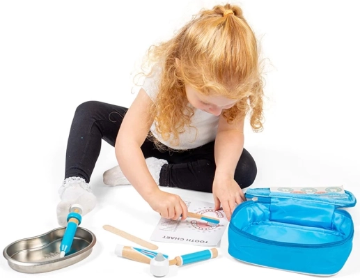 Jocul de-a dentistul susține comunicarea, empatia și cooperarea cu prietenii. Piesele au dimensiuni adaptate mâinilor copiilor și sunt fabricate din materiale de calitate, provenite din surse responsabile, care respectă normele europene de siguranță. Servieta facilitează depozitarea și transportul întregului set.