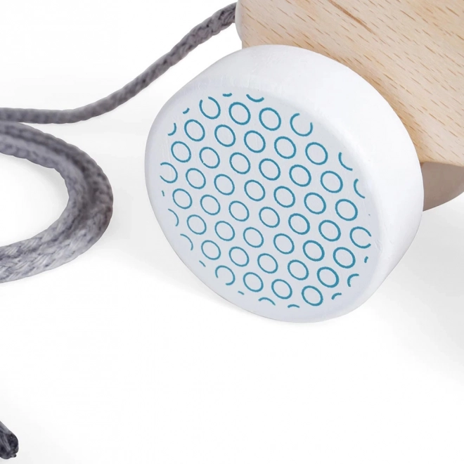 Jucăria este realizată din lemn certificat FSC, astfel că, în timp ce vă jucați, susțineți gestionarea responsabilă a pădurilor. Finisajele sunt netoxice și sigure pentru copii. Șnurul gri de tras este moale la atingere și plăcut de ținut în mânuța mică.