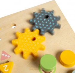 Două roți dințate din lemn încurajează explorarea mecanismelor, gândirea logică și curiozitatea în timpul jocului.