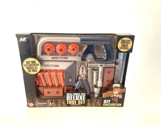Acest set de unelte este perfect pentru orice mic meșter care visează la propriul set adevărat. Conține: