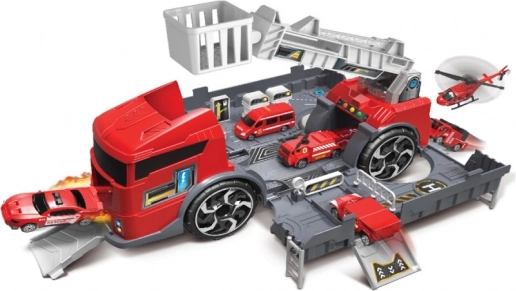 Stație de service în formă de mașină de pompieri, care oferă aventuri nesfârșite. Pachetul include două mini mașinuțe din plastic, cu care te vei bucura de și mai multă distracție.