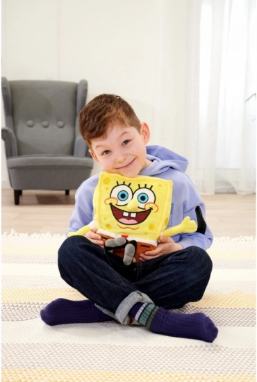Materialul catifelat și umplutura plăcută fac din plușul SPONGEBOB însoțitorul ideal pentru somn, joacă și călătorii.