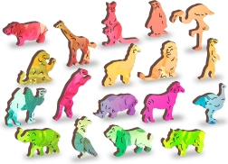 Puzzle-ul conține piese în formă de animale și obiecte, care pot fi folosite ca mici figurine.< /p>
