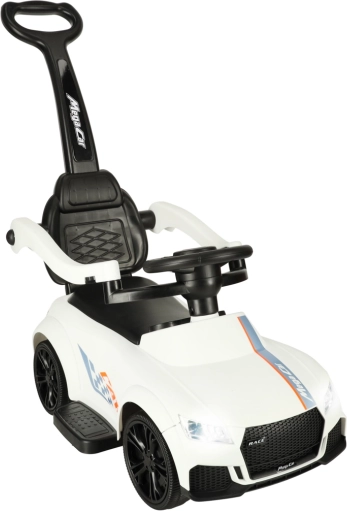 Mașinuță stilată de plimbat 3‑în‑1 pentru copii de la 12 luni, cu efecte luminoase și sunete realiste pe 3× baterii AA. Datorită elementelor detașabile se adaptează ușor vârstei copilului, oferă spătare de siguranță, scaun confortabil și rulare stabilă pentru dezvoltarea motricității și a echilibrului.