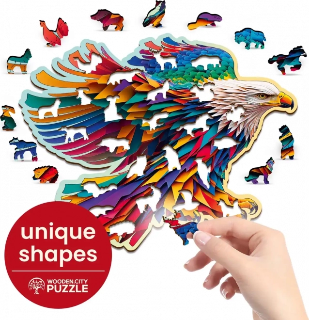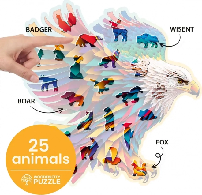 Descoperiți magia asamblării cu puzzle-ul de lemn Vulturul ager de la WOODEN CITY. Acest produs vă va captiva prin piesele sale special formate, care formează un mozaic de neuitat de forme de animale. Detaliile evidențiate prin laser și figurinele autoportante aduc noi provocări și bucurie asamblării.